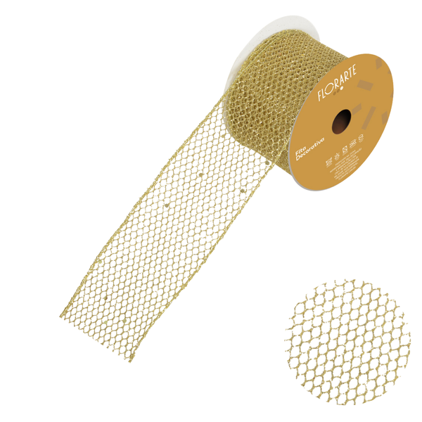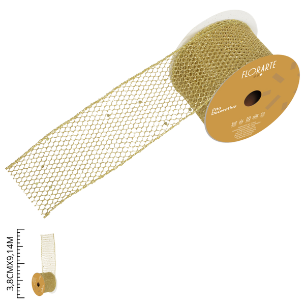 Beija Flor Fita Aramada Dourada com Glitter 6,3cm x 9,14m