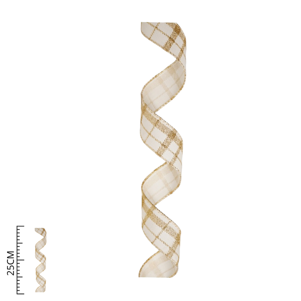 Essa fita combina a delicadeza do branco com o brilho elegante do dourado, tornando-se uma escolha refinada para decorações natalinas. Seu design aramado proporciona firmeza e permite criar laços com volume e estrutura.