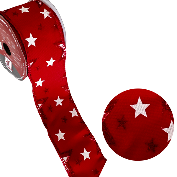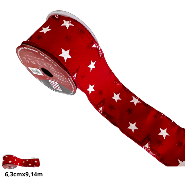 Fita Decorativa Aramada Estrelas Vermelho e Branco - Charme Natalino